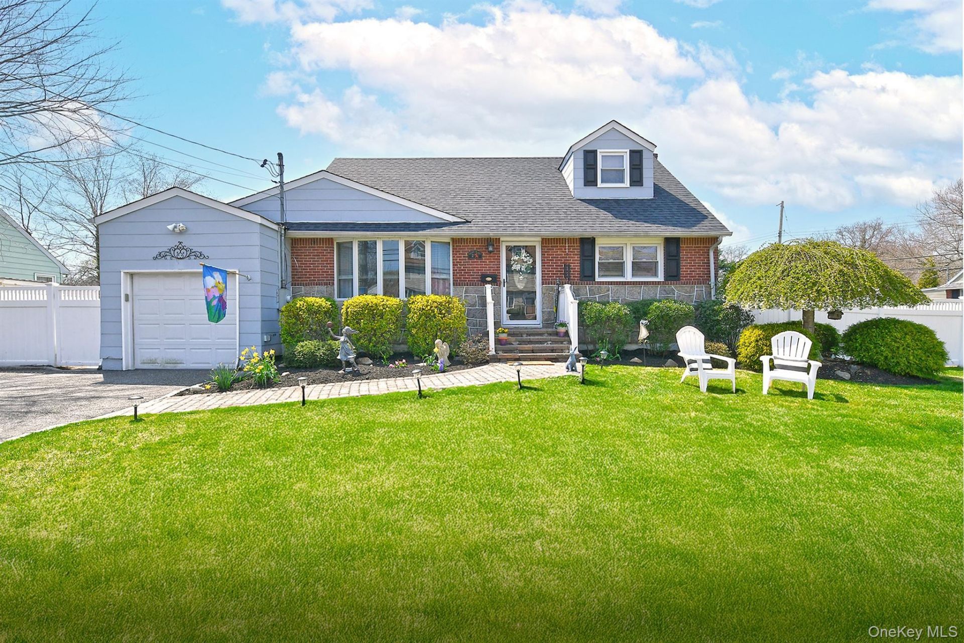 Welcome to 2 Keats Place, a beautiful 4-bedroom Cape in the award-winning Harborfields School District! As you enter you can't help but notice the welcoming feel this home offers. With its abundance of natural light and open layout, the living room, dining area and kitchen flow perfectly together. The first floor offers a primary bedroom, full bath and an additional bedroom. Upstairs are two spacious bedrooms with ample storage. A welcoming enclosed porch off the kitchen provides a special, peaceful space to unwind with convenient access to the backyard. The large full basement has unlimited possibilities. With an outside entrance, it's easily accessible from inside or out. Set on a flat, fully fenced .20-acre corner lot, the beautifully manicured backyard features a large patio and retractable awning - perfect for entertaining or simply relaxing. Additional highlights include gas heat, central air conditioning, a new roof, hardwood floors, inground sprinklers, and an attached garage. Located on a quiet block close to shopping, LIRR, beaches and Greenlawn's charming town, this home is truly a must see!